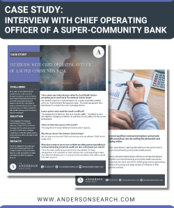 The Anderson Search Group’s extensive network and expertise in the commercial banking industry led to their retention by a multi-billion dollar client to fulfill their hiring needs. Their ability to consistently identify top talent makes them a trusted and invaluable partner to their clients.